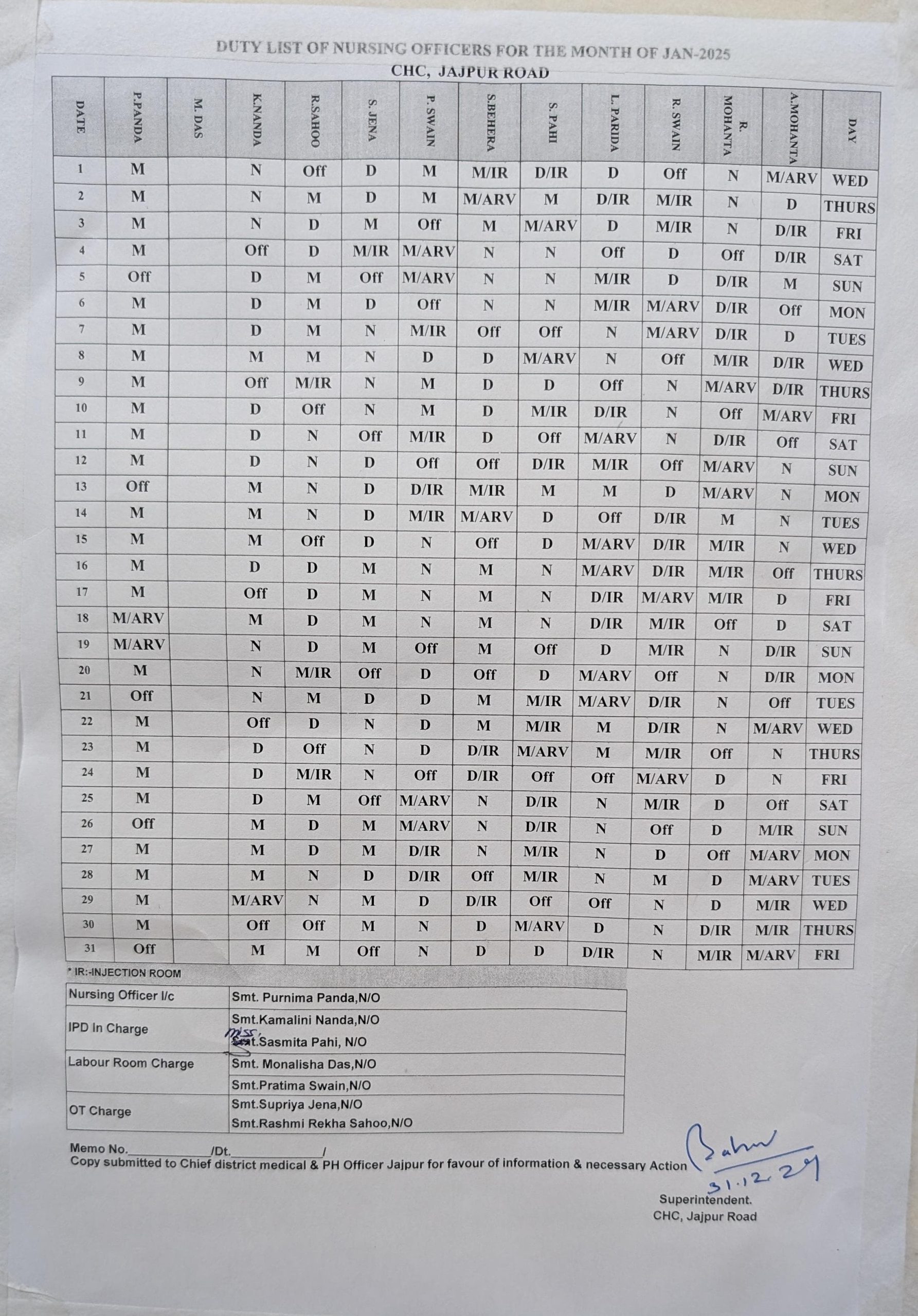 NURSING OFFICERS DUTY LIST